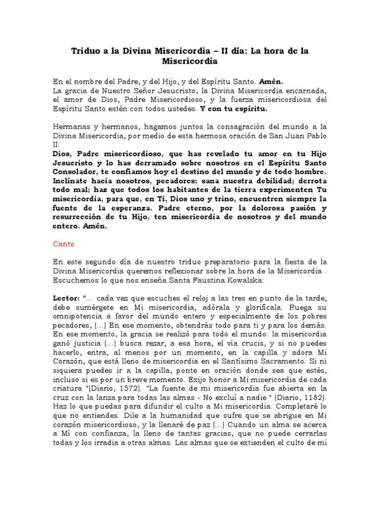 Triduo A La Divina Misericordia Ii Dia Pdf Misericordia Oracion